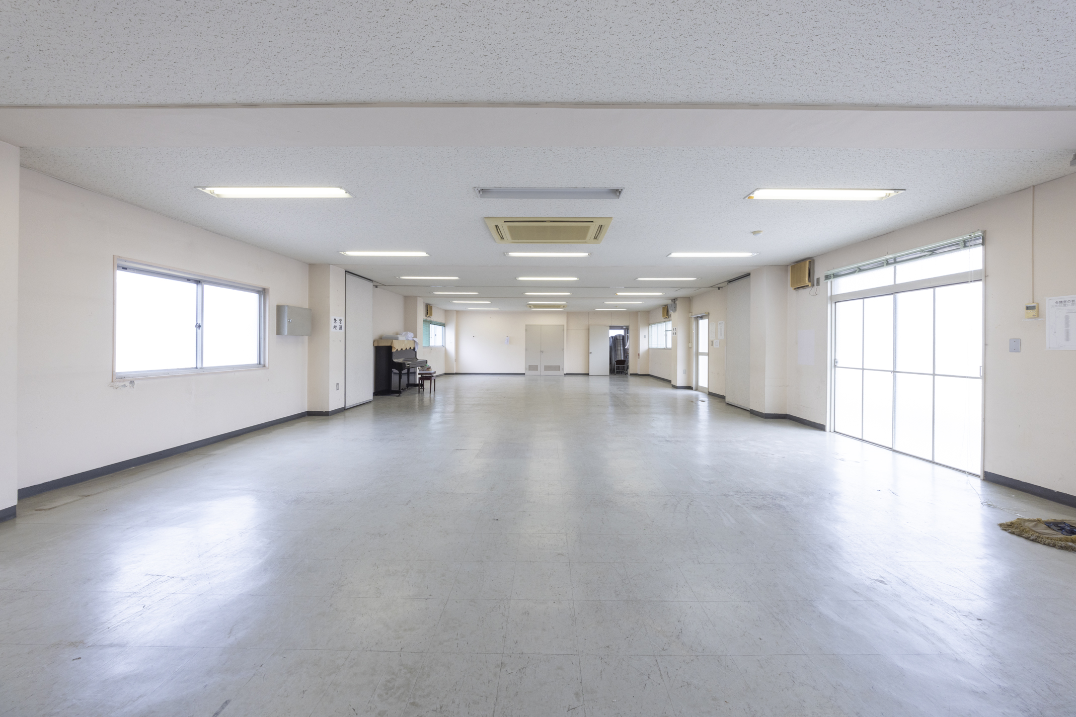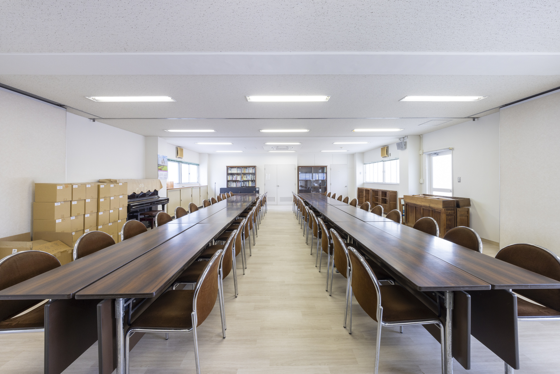 2階はギャラリーとして使用できるように改修、1階は茨木高等学校の軽音楽部が使用する為防音仕様の仕上げとなっています。